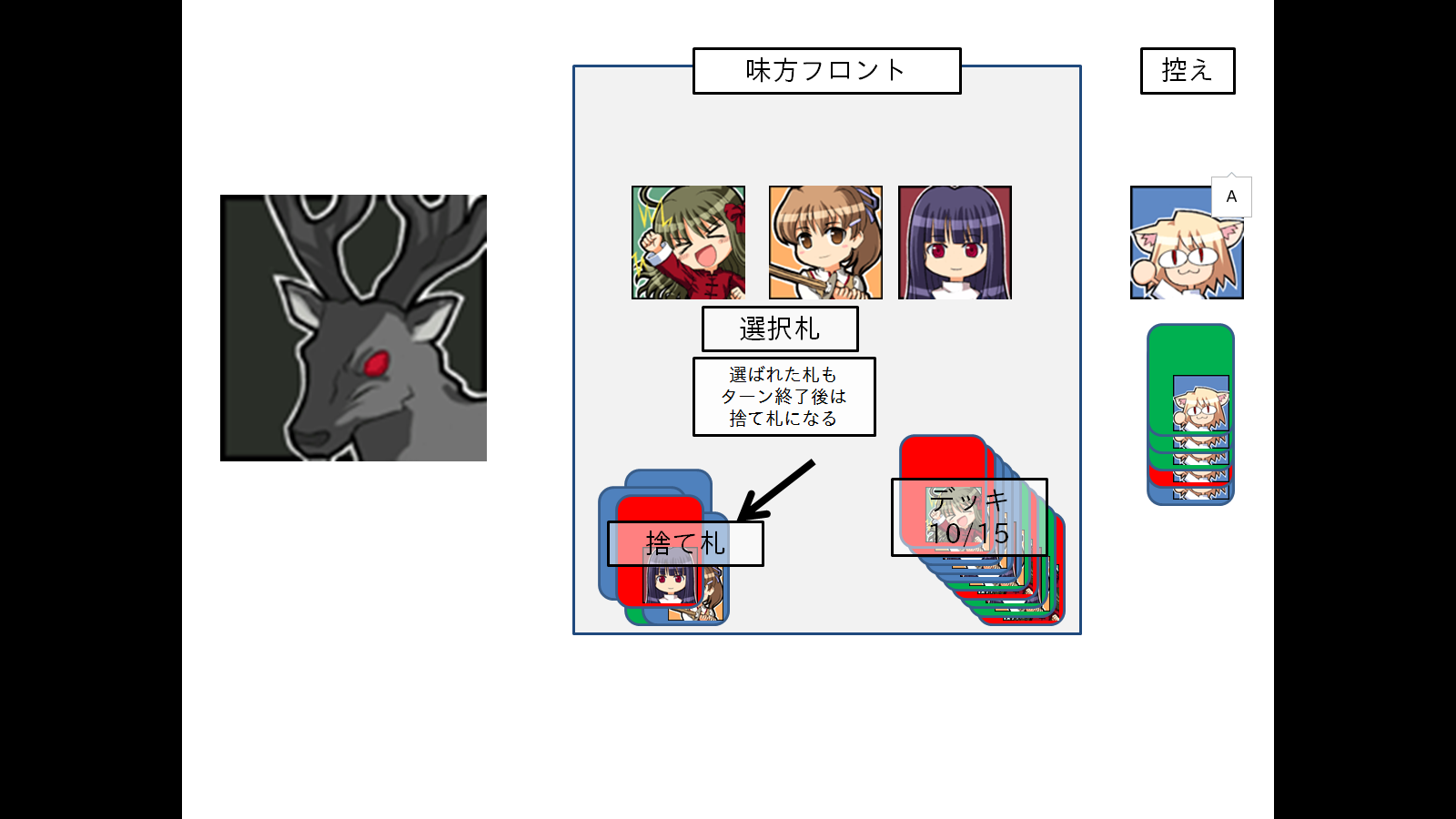 行動(こちらの攻撃)が終わったら、選ばれた手札も捨て札になる。